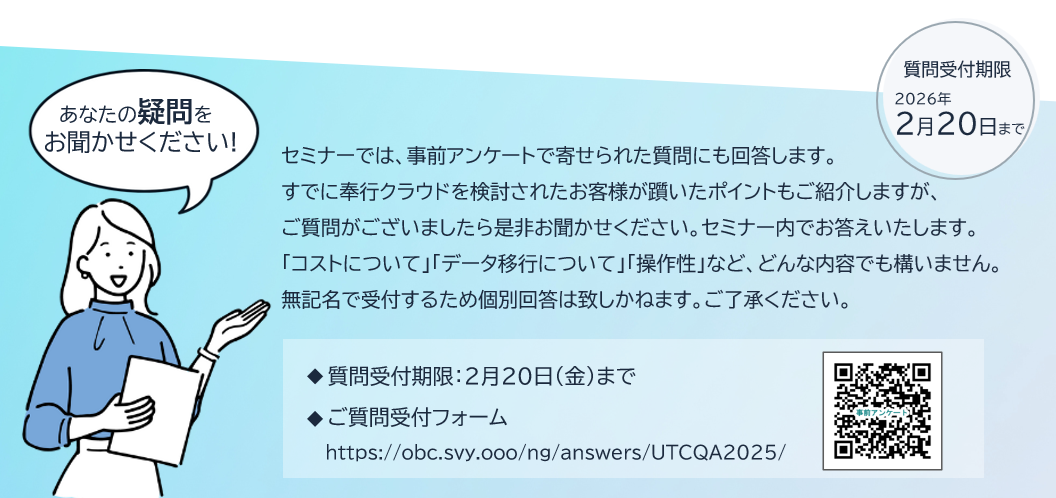 本セミナーでは、事前アンケートで奉行ⅰ11ユーザーから寄せられた“リアルな疑問や不安”を一問一答形式で徹底解消します。