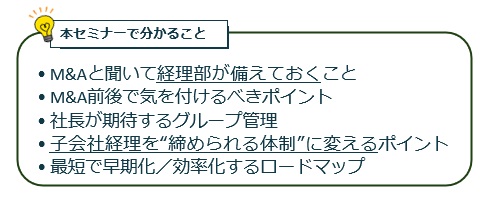 「突然のM&A、その時経理部はどう動く?」連結・統合対応の実務ポイントセミナー